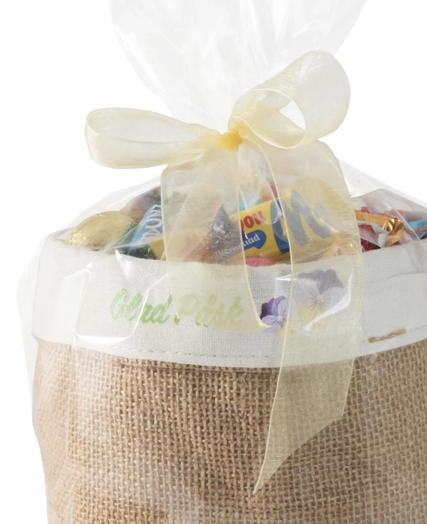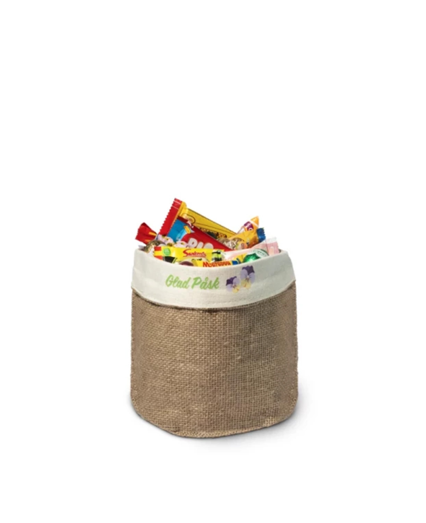 Stilig liten jutekorg med påskgodis – 1000g